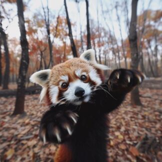 Obraz zachycuje zcela unikátní perspektivu sovy zespoda, usazené v lese mezi větvemi stromů. Tato majestátní sova nás svým upřeným pohledem, jiskřícím zvědavostí, zve na dobrodružnou výpravu do světa přírody. Její velké, výrazné oči jsou plné života a okolo nich se rozprostírají jemné peříčkové detaily, které svědčí o její divoké kráse. Na pozadí se odehrává symfonie zelených jehličnatých větví, jemně rozostřených, což vytváří nádherný kontrast k sovině ostré a soustředěné tváři. Tento pohled je doslova oknem do světa, který je mnohdy skrytý našim očím.