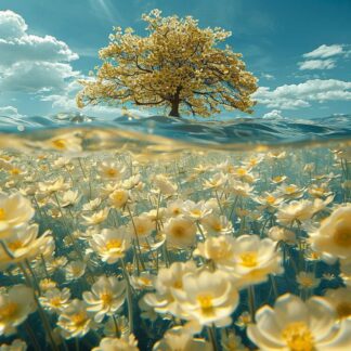Představte si pohled, který přináší klid a čistou krásu zimní krajiny. Na tomto obrázku vidíme monumentální scenérii zmrzlého stromu zabaleného ve sněhovém kabátci, tak jemném a hedvábném, že se zdá téměř nadpřirozený. Sněhové vrstvy, které obklopují strom, připomínají peří, zatímco modrá obloha v pozadí přidává obrázkův majestátní klid. Každý detail zde dýchá chladným klidem a sebemenší okamžik tohoto pohledu vás přinutí zastavit se a obdivovat sílu přírody.